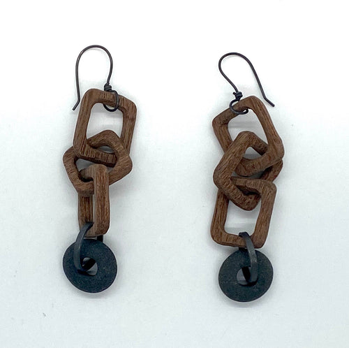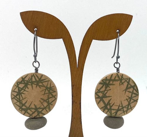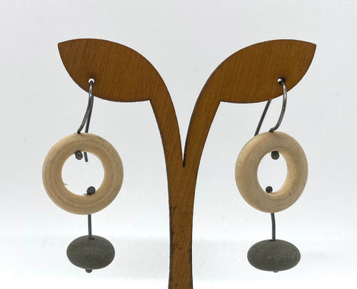 Wood Circle Rock Earrings