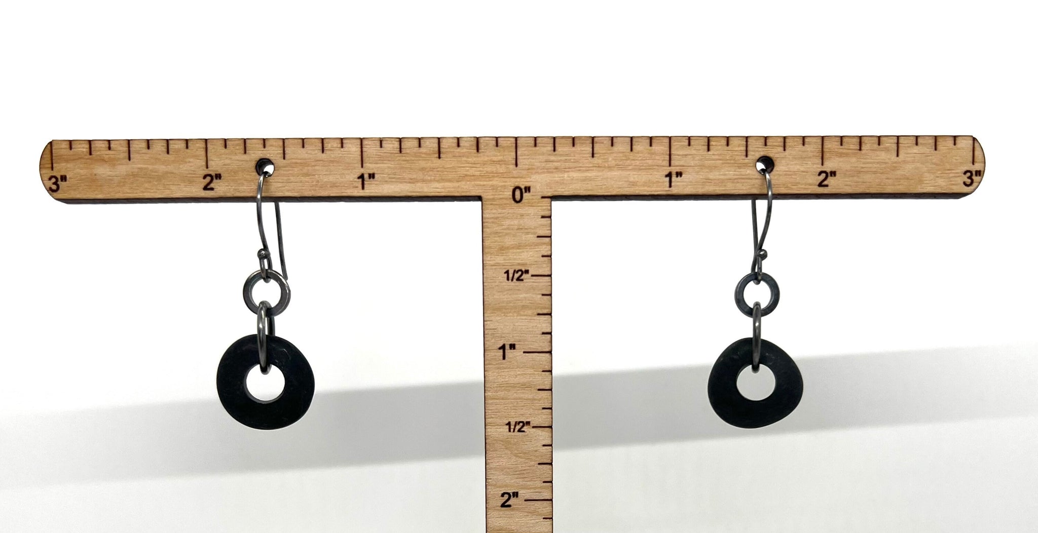 These rocks are dark grey(pretty much black) and smooth with a silver ring accent. The earwires are sterling silver and handmade.