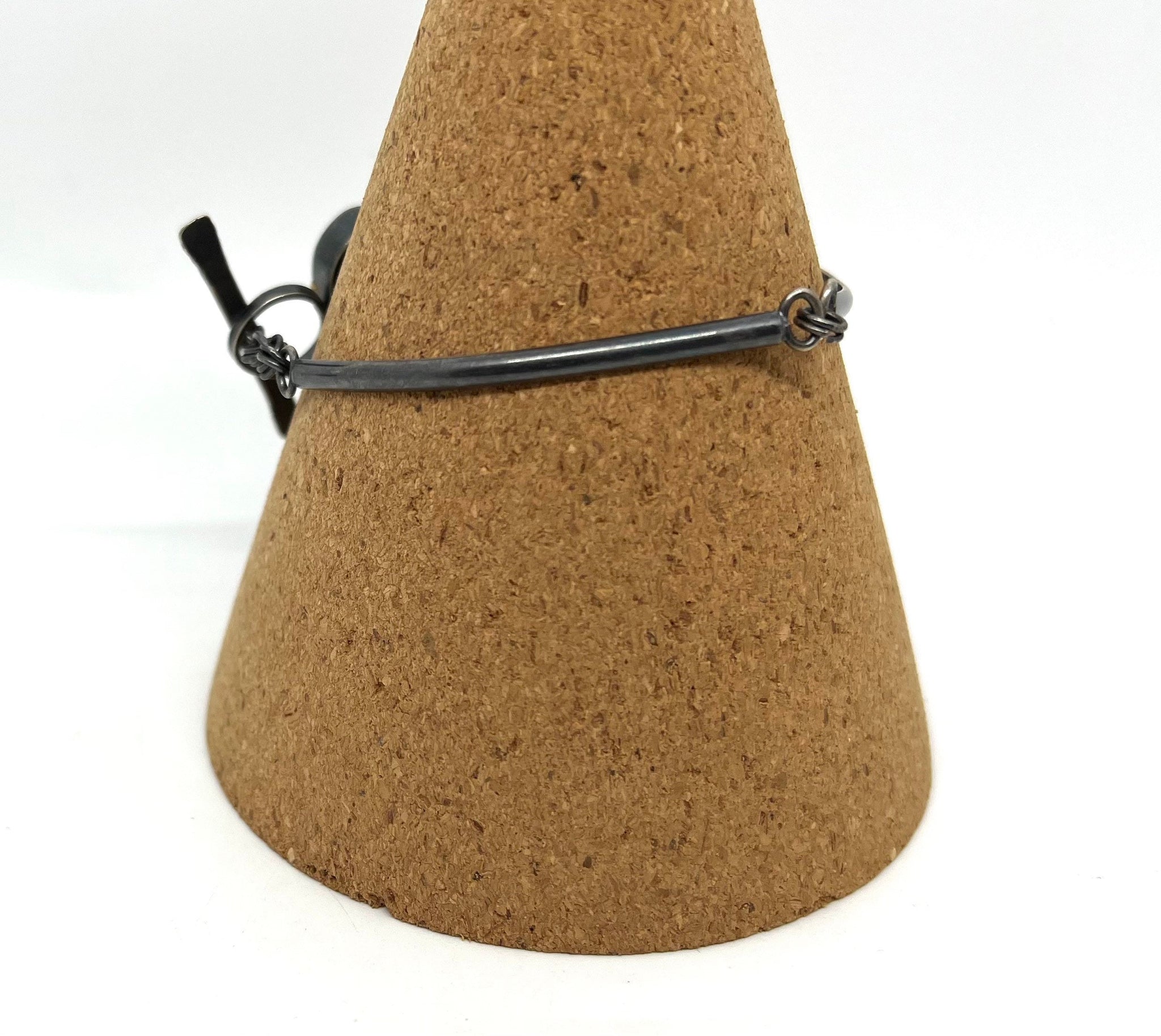 This piece is made with stones from Lake Superior and sterling silver. The silver is oxidized to get the grey color.