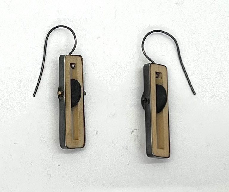 These earrings are made with stones from Lake Superior and sterling silver. The silver is oxidized to get the grey color. These stones, along with all the stones in my jewelry, have been found by my husband and myself at Lake Superior. Yes, we spend a lot of time at the beach! The majority of these rock are basalt. We may have drilled or cut them but otherwise they are un-altered and untreated. They will absorb some of your oils and deepen in color and take on a beautiful sheen. I try to find fairly thin rocks and I think you will find them to be much lighter than you would expect. Each piece is unique These earrings are a wood frame, with silver wrapped around the outside and a dark grey rock pinned inside. They hang from sterling silver ear wires. They measure approx. 2 inches from where they hang in your ear to the bottom. This sale is for this item pictured. I do make this style often, but each one is different and a different size. I have a few of this style available, and I’m working on getting them up here, but if you want to see other options, please convo me. Please feel free to convo me if you have any questions.